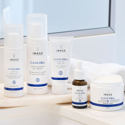 IMAGE Skincare® harnesses the full power of salicylic acid in our CLEAR CELL Collection, designed specifically for blemish-prone skin. These formulas combine professional-grade BHA with calming botanicals and barrier-supporting ingredients for visible results — without the irritation. Each product is thoughtfully developed to rebalance oily, acne-prone skin, so you can target blemishes without compromising hydration or comfort.