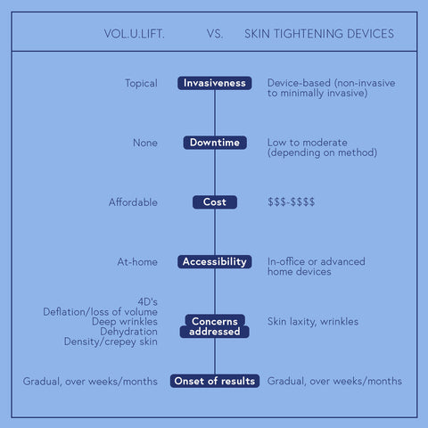 When deciding between VOL.U.LIFT and skin tightening devices, consider:
